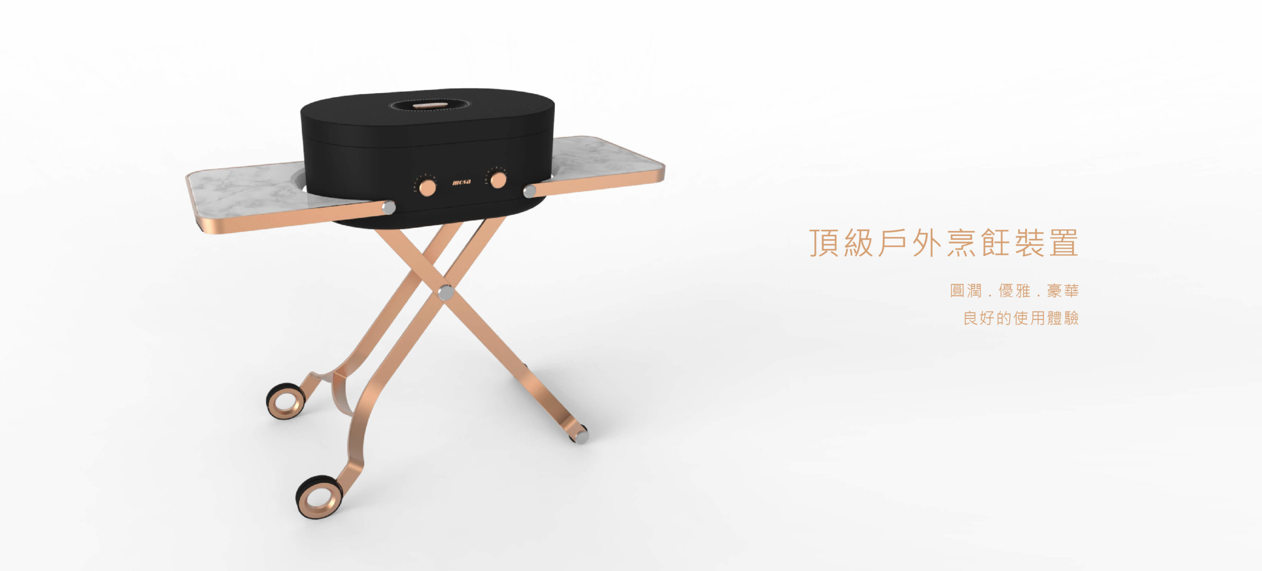 這是一組給頂級消費者 , 外出露營或野餐時 , 攜帶的戶外烹飪裝置 , 本裝置是燃燒瓦斯 . 設計的重點在於 : 高質感營造與優良的使用體驗 . 下面我們來談談其設計的特點 .