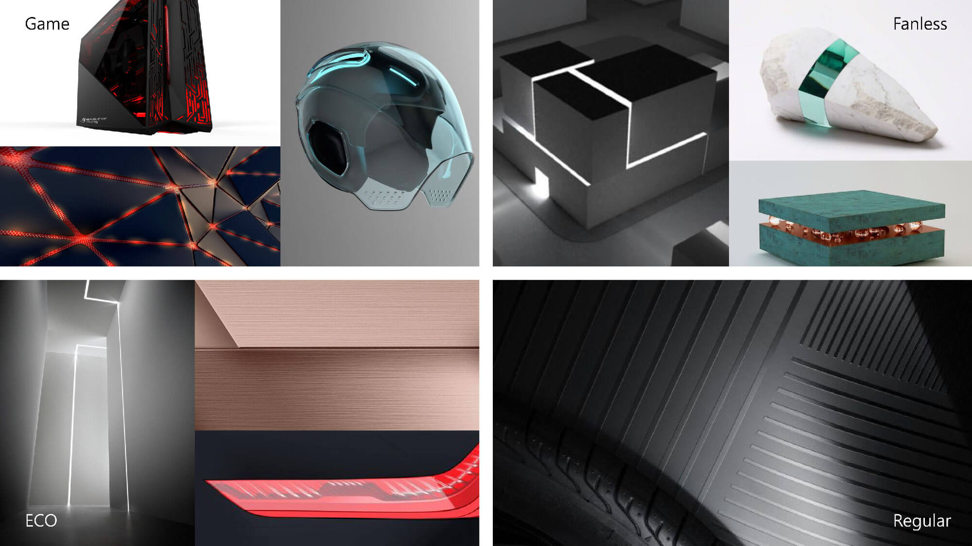 透過大量的 Research , 我們發現 < 切割 > 是一個非常適合做整體產品戰略佈局的概念 , 它可以呈現材質 , 功能 , 燈光效果等 . 切割方式的不同也可以迎合到不同的市場與 TA 的喜好 .
