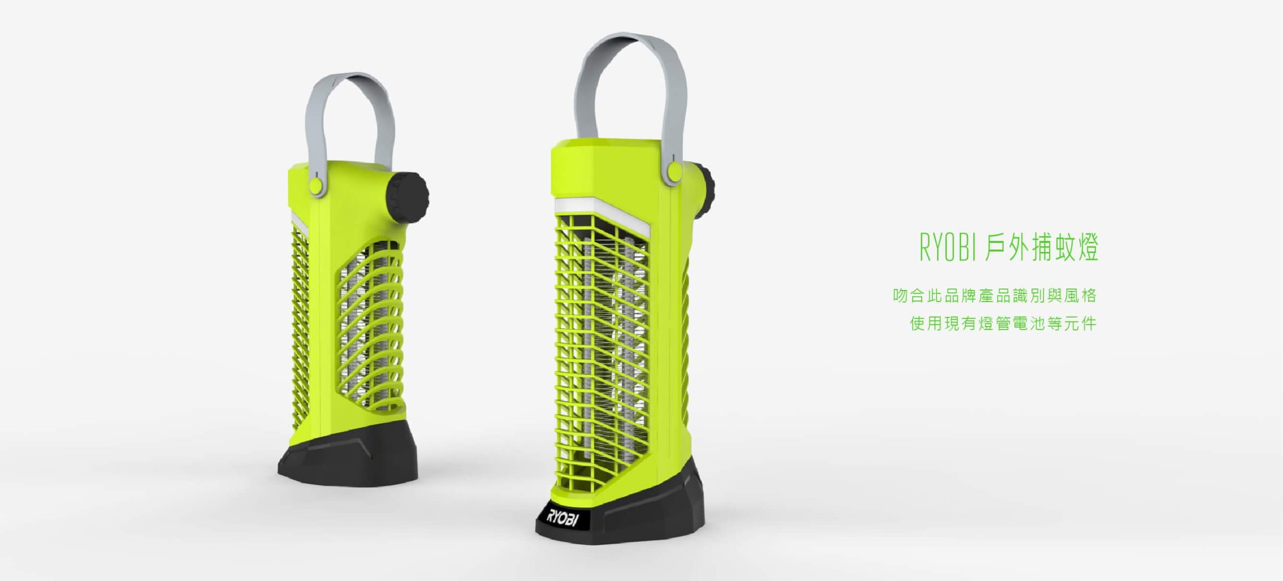 RYOBI 為電動工具與戶外設備之全球市佔率第一的國際品牌 . 我們為此品牌設計新一代的戶外捕蚊燈 .