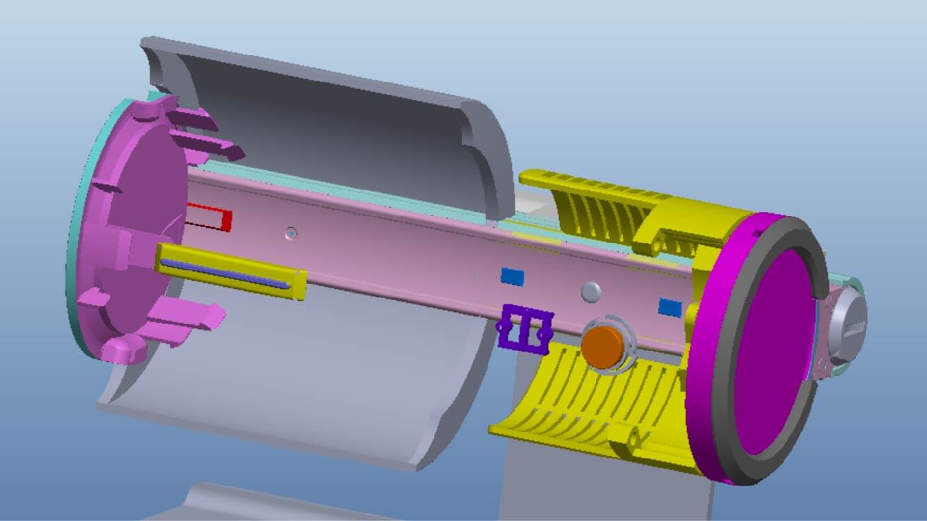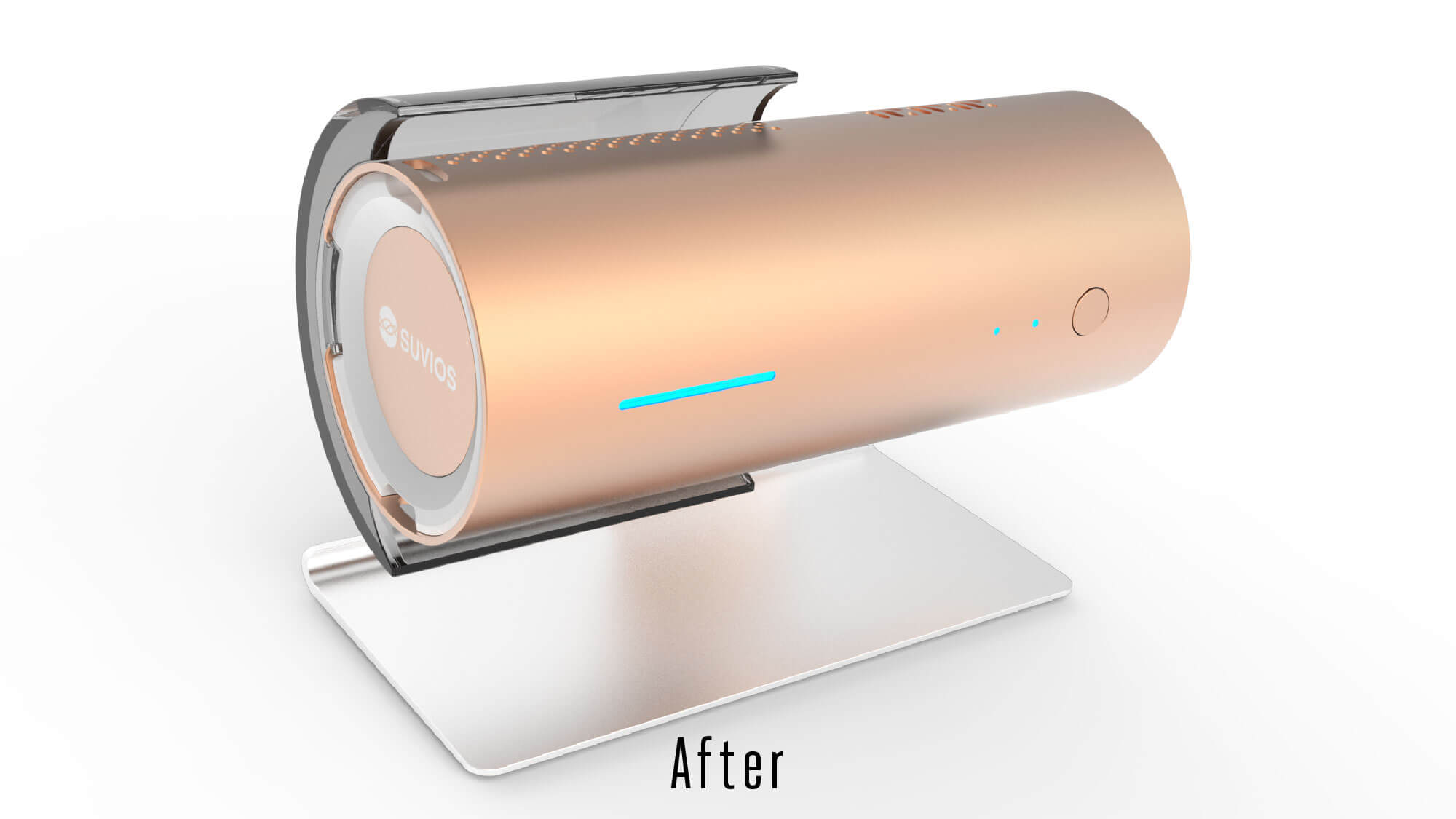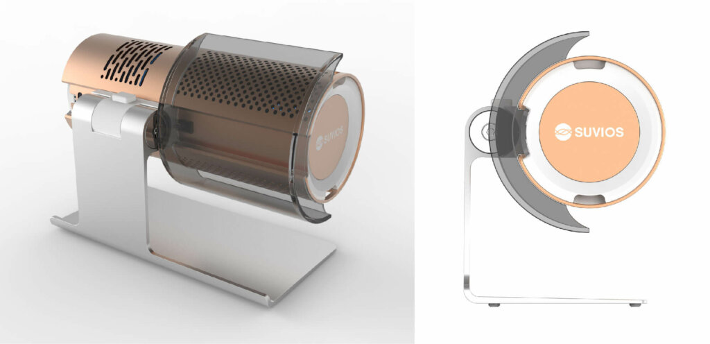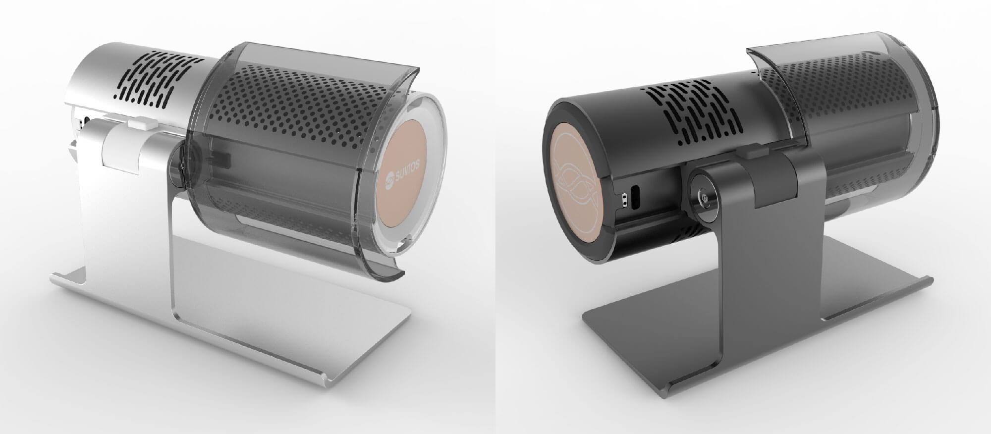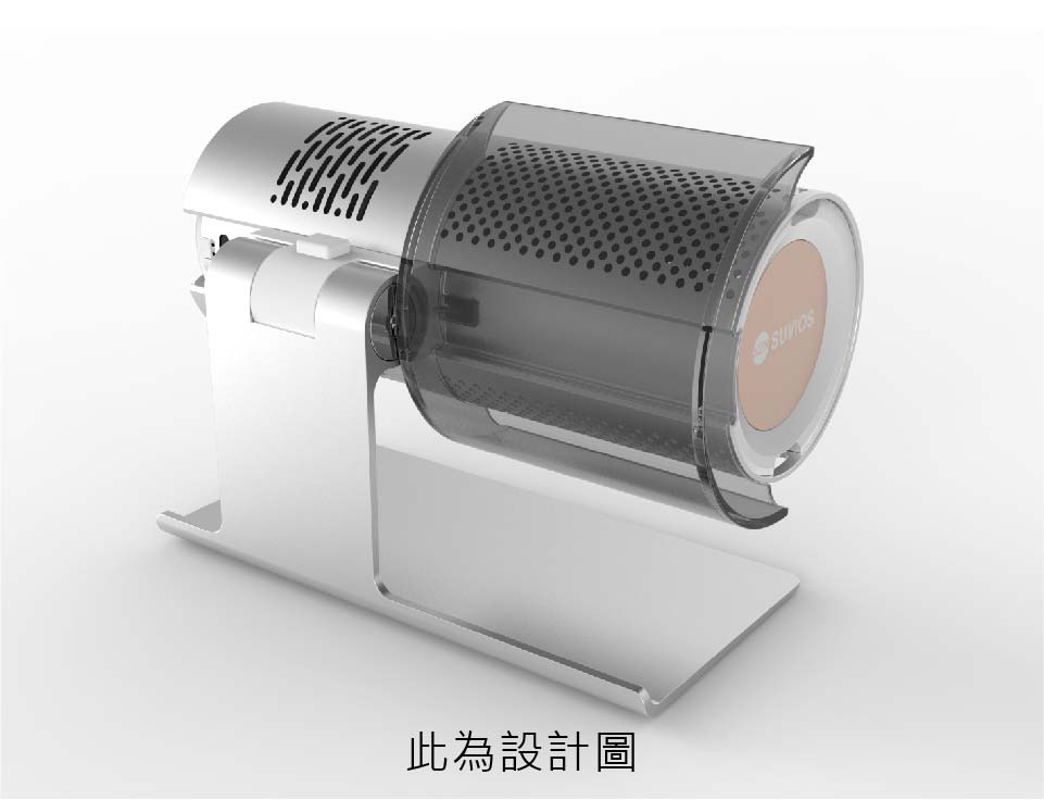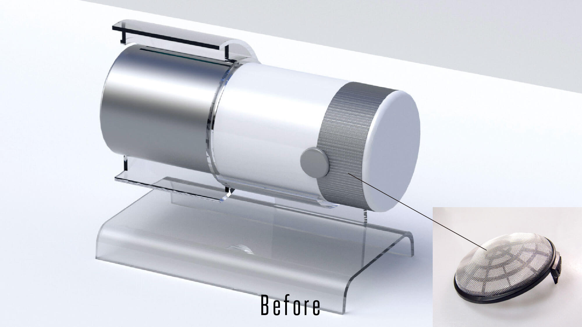 原為德國設計團隊設計 , 其材質較為雜亂 : 右段進氣使用鐵網 , 質感較差 ; 中段塑膠感略重 , 且內部射線裝置會破壞塑膠材質 , 發黃脆化 ; 左段使用不鏽鋼 , 成本較高 . 底座支架為透明塑膠 , 支撐與配重也有問題 .
