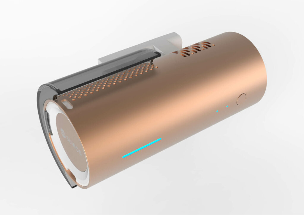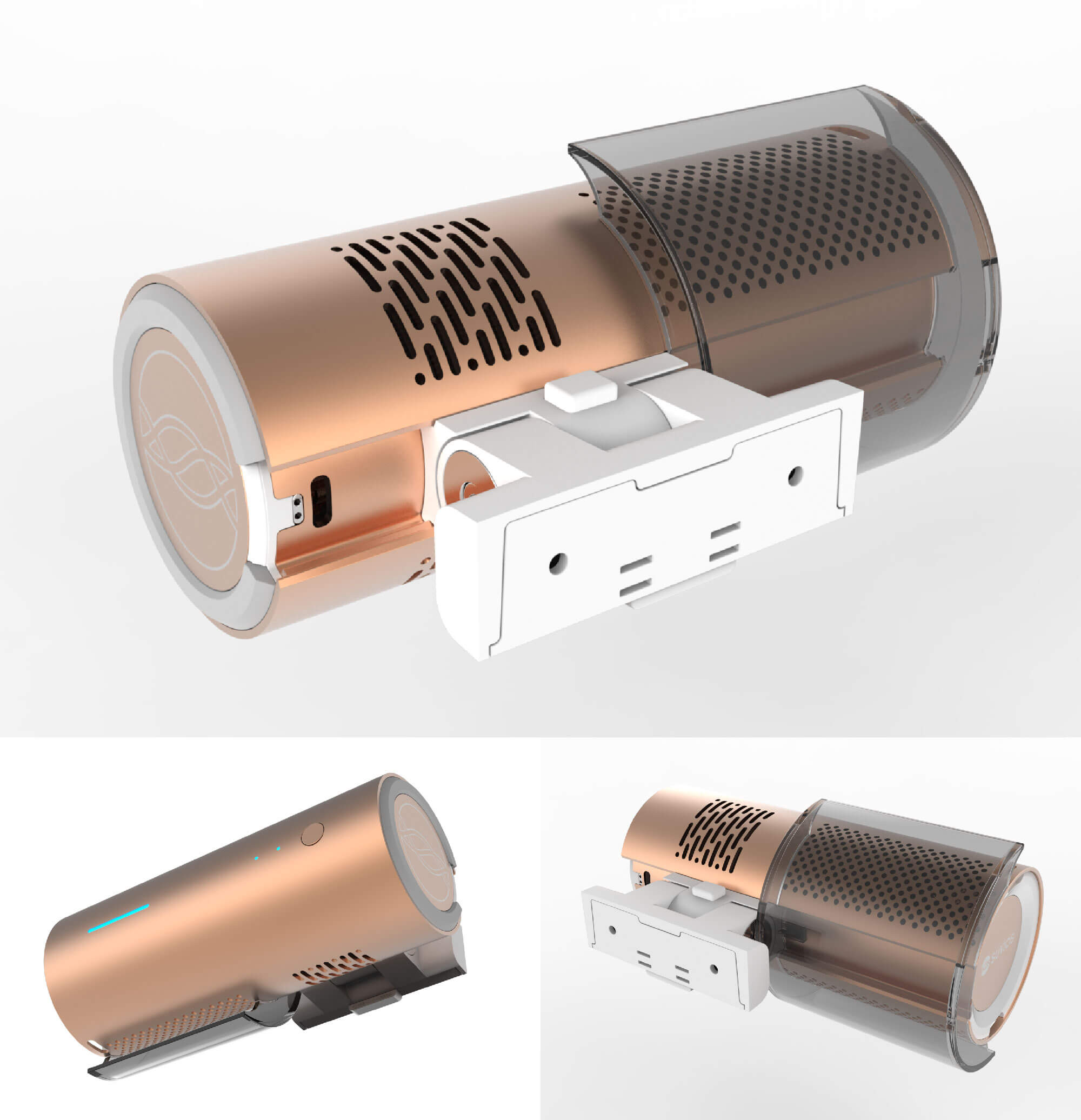 這是一個透過循環空氣 , 利用機芯中的特殊裝置 , 消滅空氣中病毒細菌等有害物質的產品 . 並因為其短小輕巧 , 故可以安置在任何環境 , 也便於隨身攜帶 .