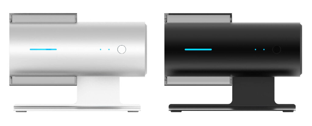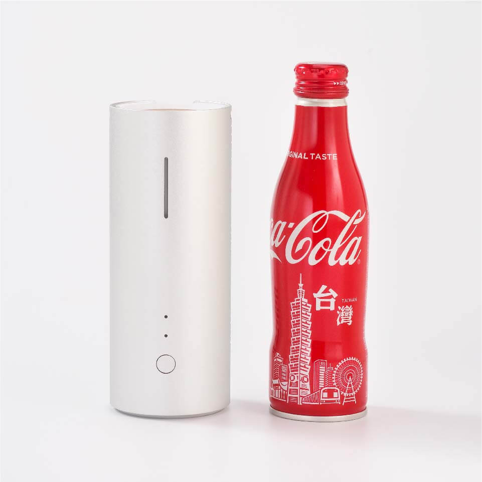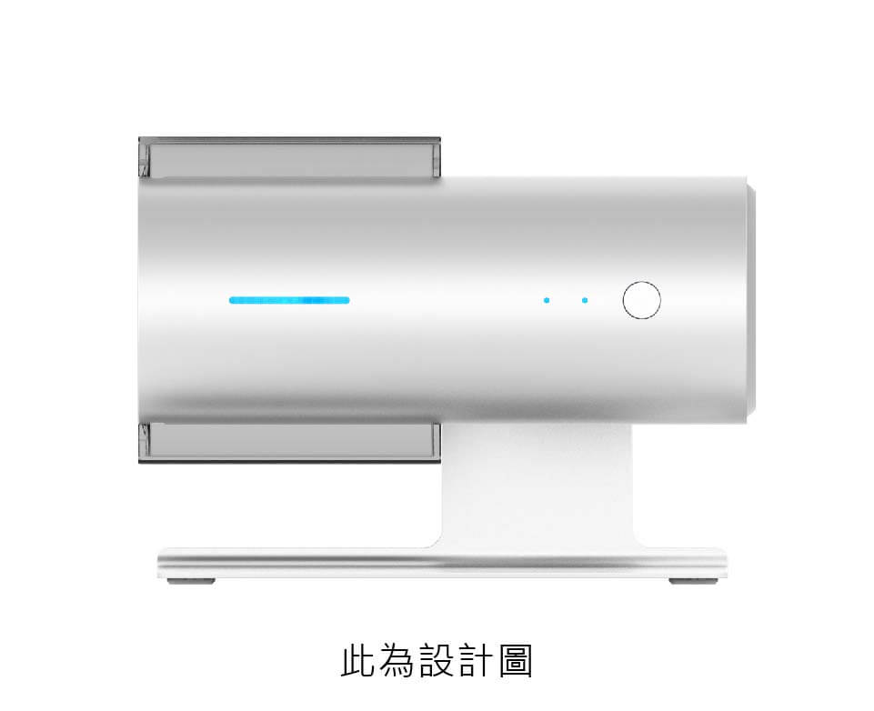 最精簡的裝備 , 即主機本身 , 大約是 350 ML 的保溫杯大小 , 極輕巧 . 搭配長條的狀態燈條 , 更顯高挑 .